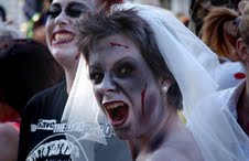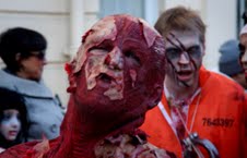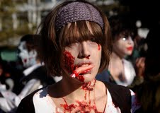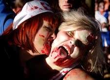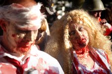 Up to 4,000 people took part in the annual zombie walk through the centre of Brighton yesterday.