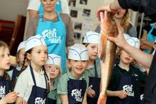 The restaurant’s head chef Loz Tallent and co-owner James Ginzler helped cook up interest among the schoolchildren as part of a regional campaign called Fish is the Dish.