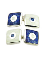 Silver and enamel Purcell Manuscript cufflinks, £149 by Fiona Rae.