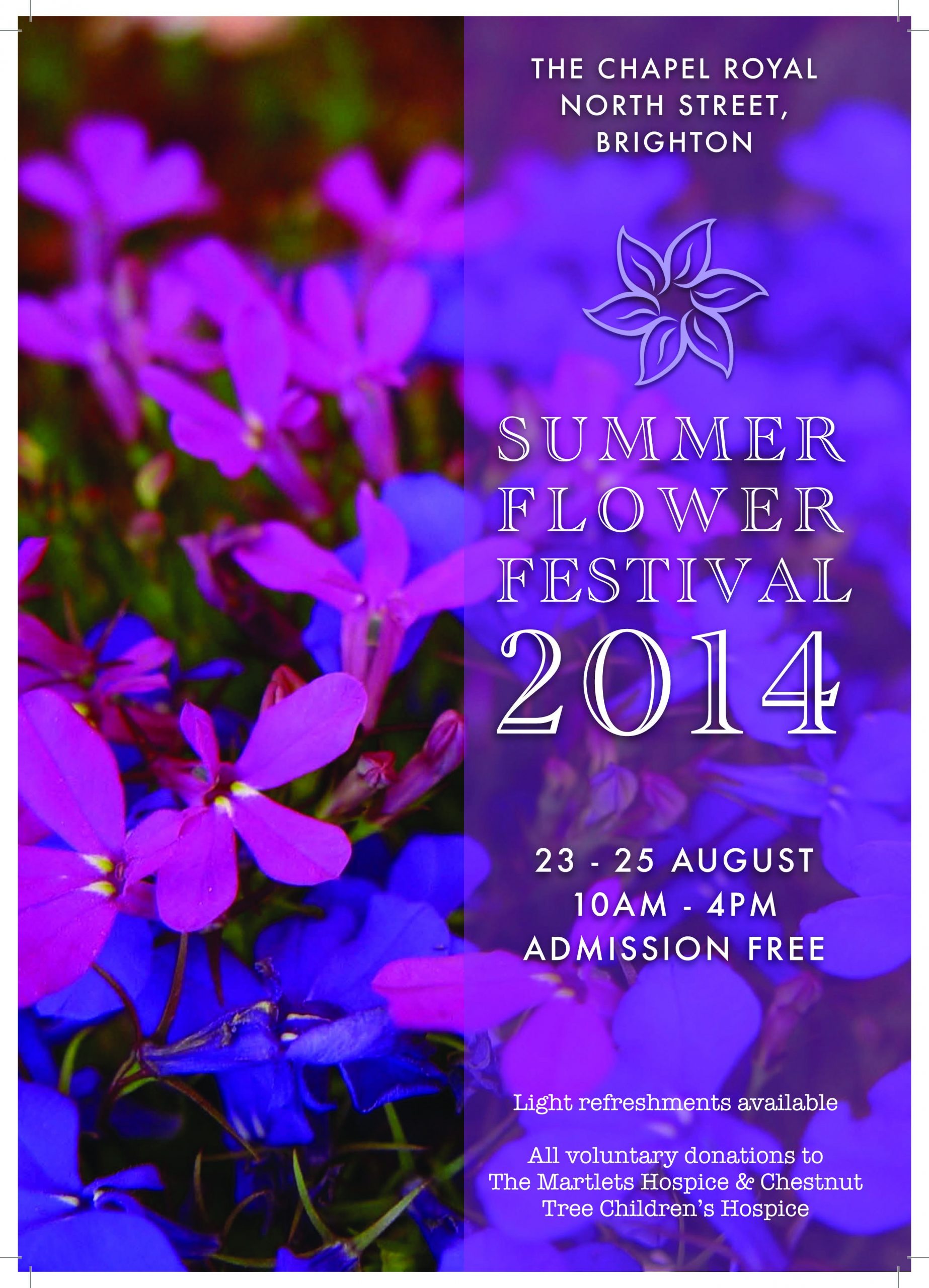 The Chapel Royal in Brighton is celebrating all things summery by holding a Summer Flower Festival over the August bank holiday. The festival is being held in support of The Martlets and Chestnut Tree Children’s Hospice, with the aim of raising money for these two amazing local charities.