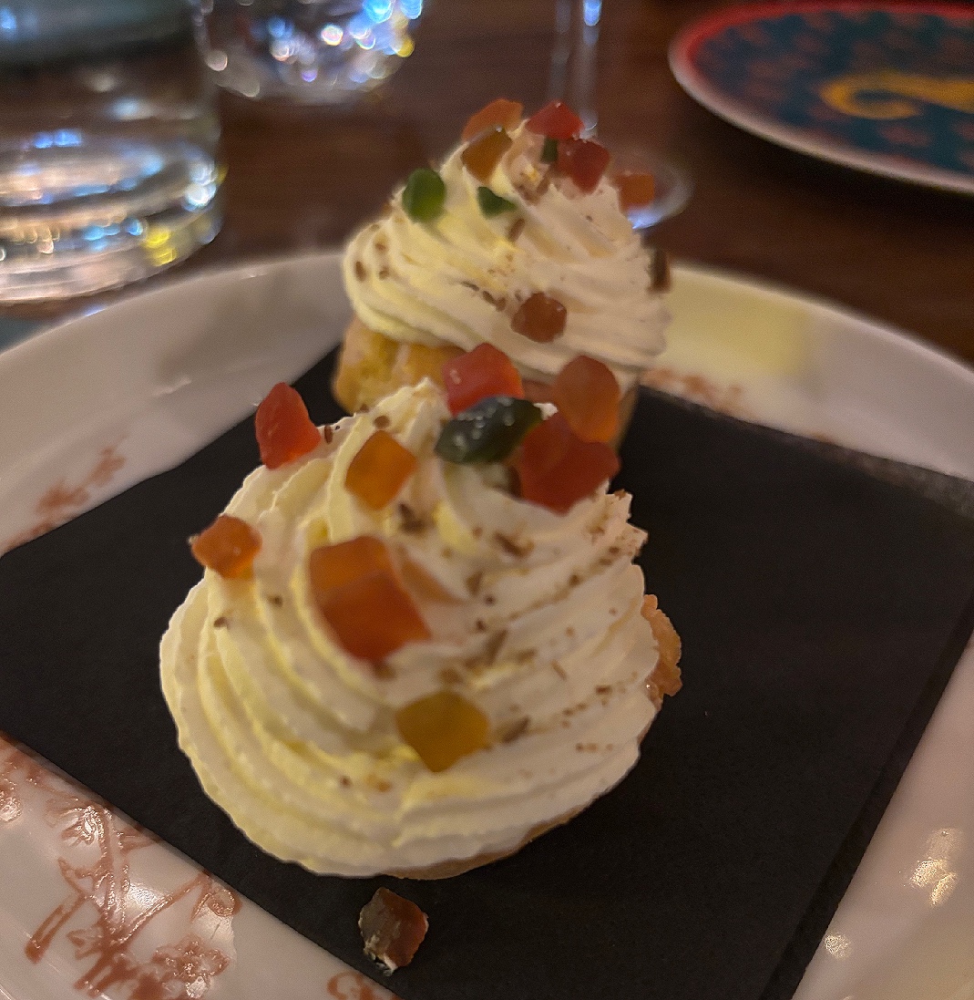 First out was an amuse bouche, a delicately and fragrantly spiced muffin topped with whipped curd and the fascinating addition of candied peel. It countered the cocktail so well and that balance of sweet and savoury was expertly delivered.