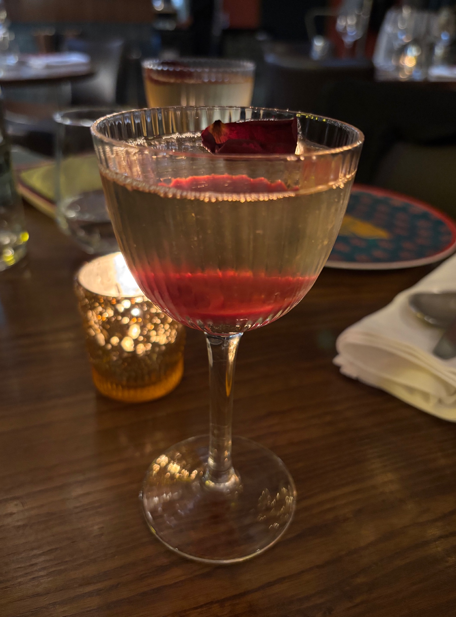 Colonel Saab currently are offering a set menu matched to the show with cleverly penned names for the dishes. It’s a five course feast of a meal, not one of those tasting menus where you leave feeling peckish, this is generous stuff for sure and starts with an intriguing vodka cocktail that has a subtle hint of anise and sweet hint of raspberry and rose, rather stylish and rather pokey too if you like your cocktails strong.