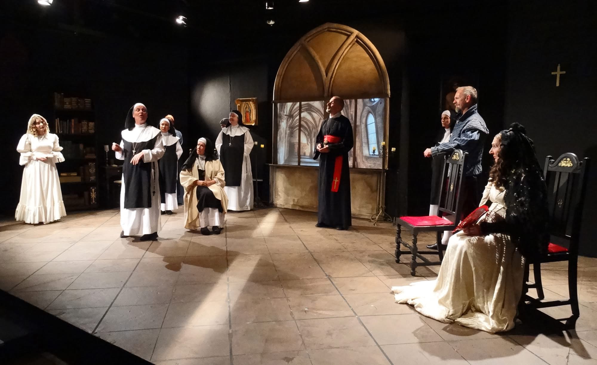 Into the life of the convent comes a new Archbishop, Aguilar y Seijas played with chilling austerity by Bill Griffiths. He captures the extremity of this ambitious, woman hating priest with clarity, and this is quite neccessary in this word heavy script.