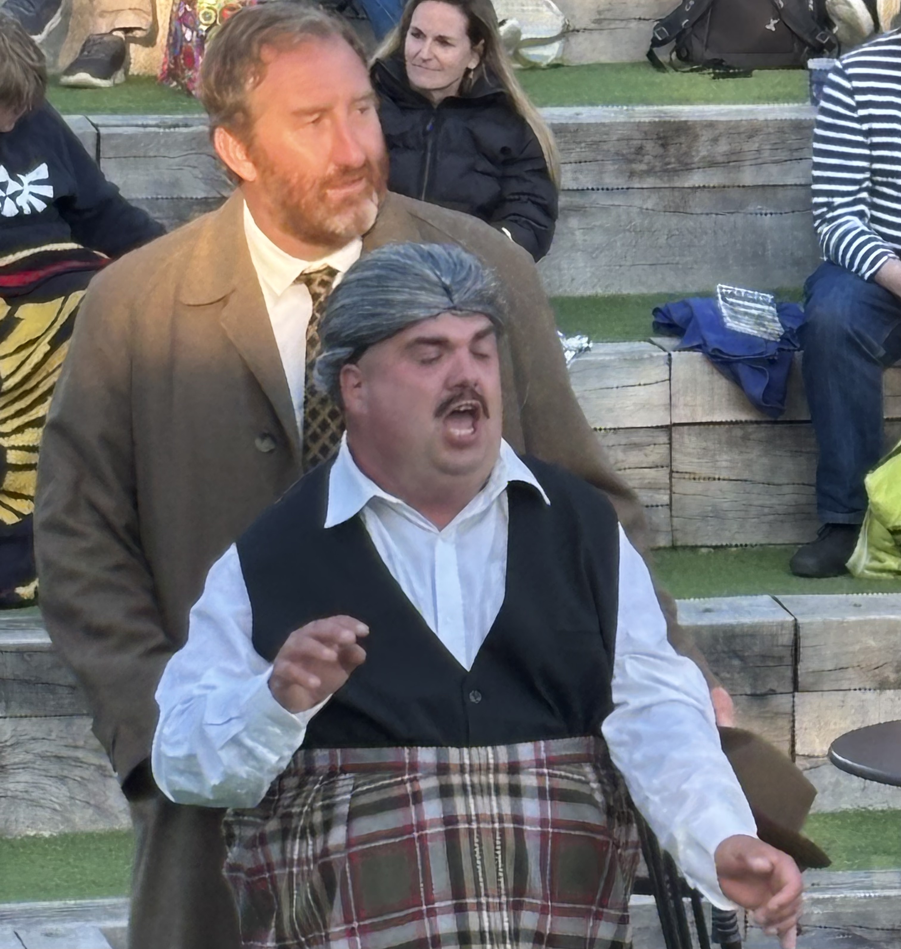 So rather brilliantly all this is pulled off by a cast of just four, yes four. Jamie Kenna, you know him from Peaky Blinders and Coronation Street as well as a CV peppered with roles, plays Hannay, the louche middle aged hero who becomes unwittingly embroiled in a German plot to steal secret information. It’s a masterclass in the portrayal of upper middle class masculinity, all clipped tones and affected mannerisms and added to that some hilariously funny physical theatre.