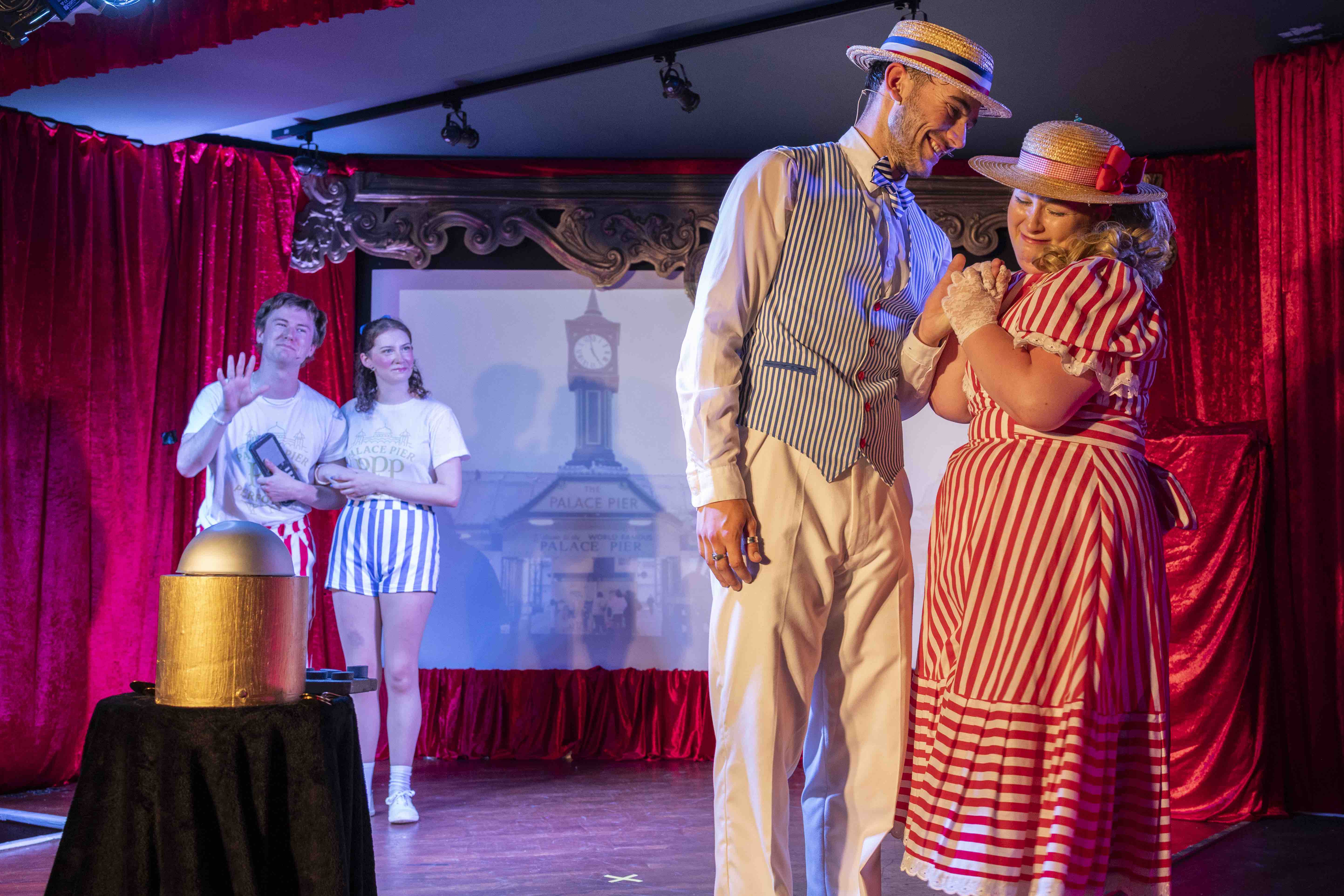 The show includes lots of audience interaction with spoon playing and pantomime style shout-outs. The cast: Neith Alexandra, Louise Newington, Alex Kail, Ted Brickley and Evie Newman, collectively the Palace Pier Performers, look like they are having a ball and the pace is exciting throughout. “Are you ready to bring back seaside entertainment to the pier?” they ask the audience, and Brighton shouts back YES!! With rousing applause! More please! Billed for young people, the show is entertaining for all ages, and reckon it would delight older audiences just as much.