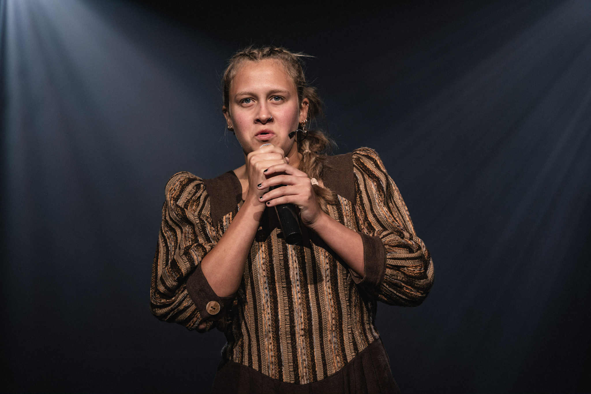 Spring Awakening is very much an ensemble piece with individual stories weaving around the central characters and none of this is lost in this production. And the fact that this was conceived and written as a rock musical no doubt dictates that at times, using hand held microphones, the presentation of songs dictates a “rock” performance. This I understand but I did feel at times the handling of the mics was hampering the delivery and certainly masking the emotions so well played by the performers. That though is a very personal observation and I am sure others will feel very differently.
