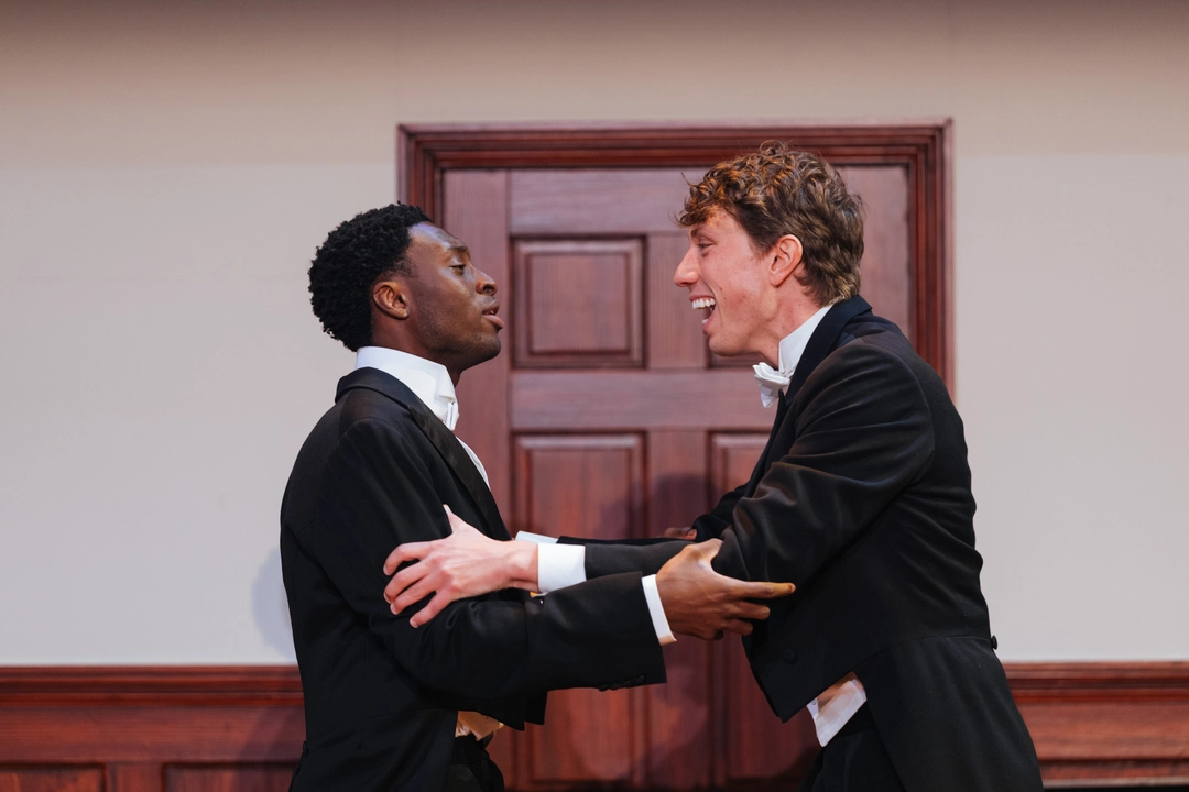 Bogyo has not only written this but also plays Connor, a robust all American white boy with a passion for a Capella singing. He shares a room with Isaiah, a black American scholar, less confident but bonded by an equal passion for singing. Ernest Kingsley Jr plays the role with such charm, a genuine sense of innocence and youth.  Céline Buckens is Annabelle, the radical should be waspish white girl whose ambitions are focused. Utterly believable in the role as is Bola Akeju as Stacy who emerges from the passive young black student to be revealed as something quite quite different.