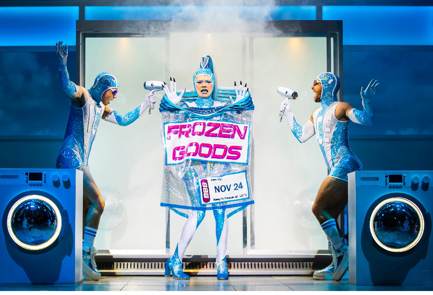 This is by far the campest theatrical manifestation I have ever seen, and I have seen camp writ large. It makes Priscilla Queen of the Desert look like a kitchen sink drama. It is enormous in every sense, loud, brash, silly, sumptuous and thoroughly entertaining. The ensemble work their neon pink socks off, the band belt out the tunes and I never thought I would see what I can only describe as trolleyography! Well it is set in a shocking pink and baby blue supermarket!