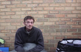 Documentary filmmaker, Eva Marie Wilshere and Local Housing Campaigner, Daniel Harris talk to Bill Smith...