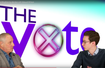 Geoffrey Bowden talks with Edward Wilson, Conservative candidate for the East Brighton by-election.