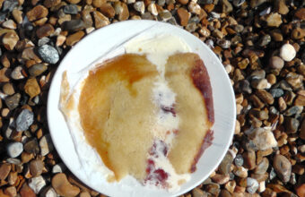 Somewhere in the middle of walking inbetween the two piers, accidentally sitting on my cling-film...
