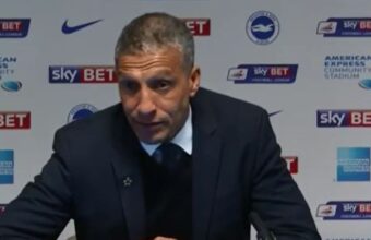 Brighton & Hove Albion Manager Chris Hughton reacts to his side’s 1-1 draw with Derby...