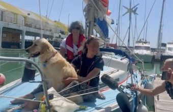 Solo sailor, Jazz Turner had an emotional reunion with family, friends and her beloved dog,...